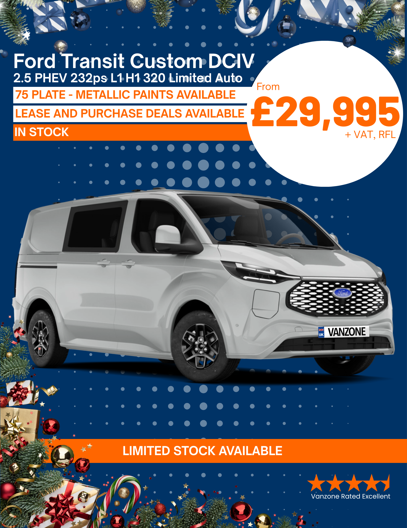 Stock is limited—secure your L1 or L2 Ford Custom Limited PHEV DCIV while this exclusive offer lasts.